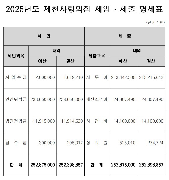 Á¦Ãµ»ç¶ûÀÇÁý 2025³âµµ ¼¼ÀÔ ¼¼Ãâ °á»ê °ø½Ã